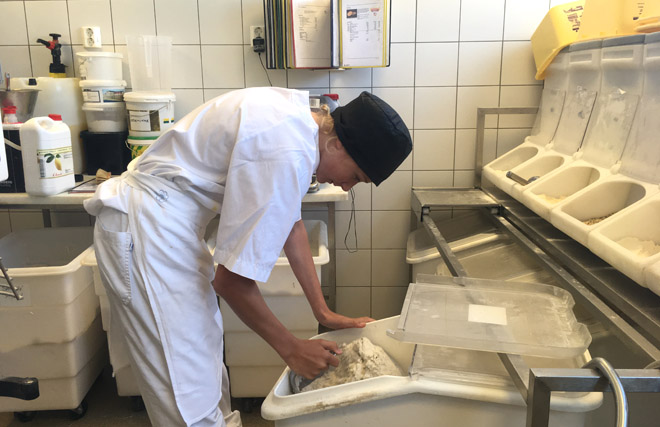 ![]() Torbjørn i aksjon på Terningen bakeri i Elverum. |