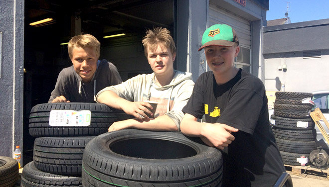 ![]() Erik, Sander og Marcus jobber hos Mekonomen på Rena. |