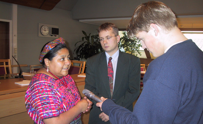 fredsprisvinner Rigoberta Menchu, som var i Oslo i forbindelse med