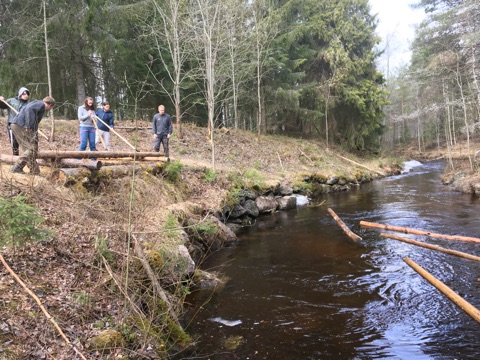 prøve seg som tømmerfløtere i en liten elv ved Glomdalsmuseet. Vi